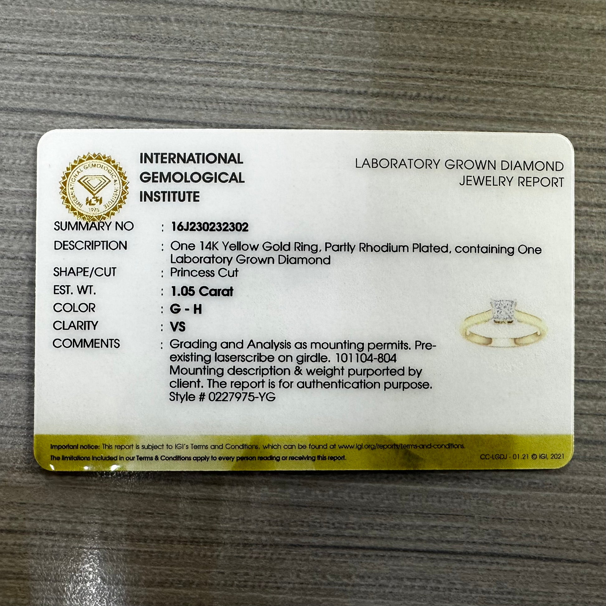 1.05 CT Princess Lab Grown Diamond Solitaire Ring in 14K Yellow Gold
