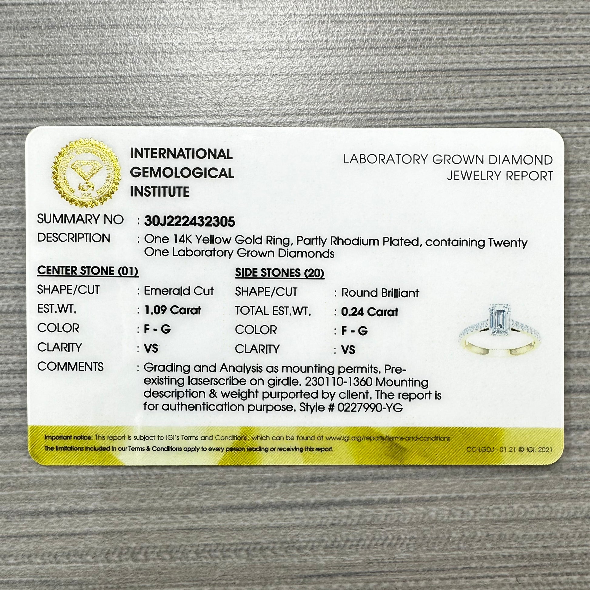 1.25 CTW Emerald Lab Grown Diamond Ring in Yellow Gold