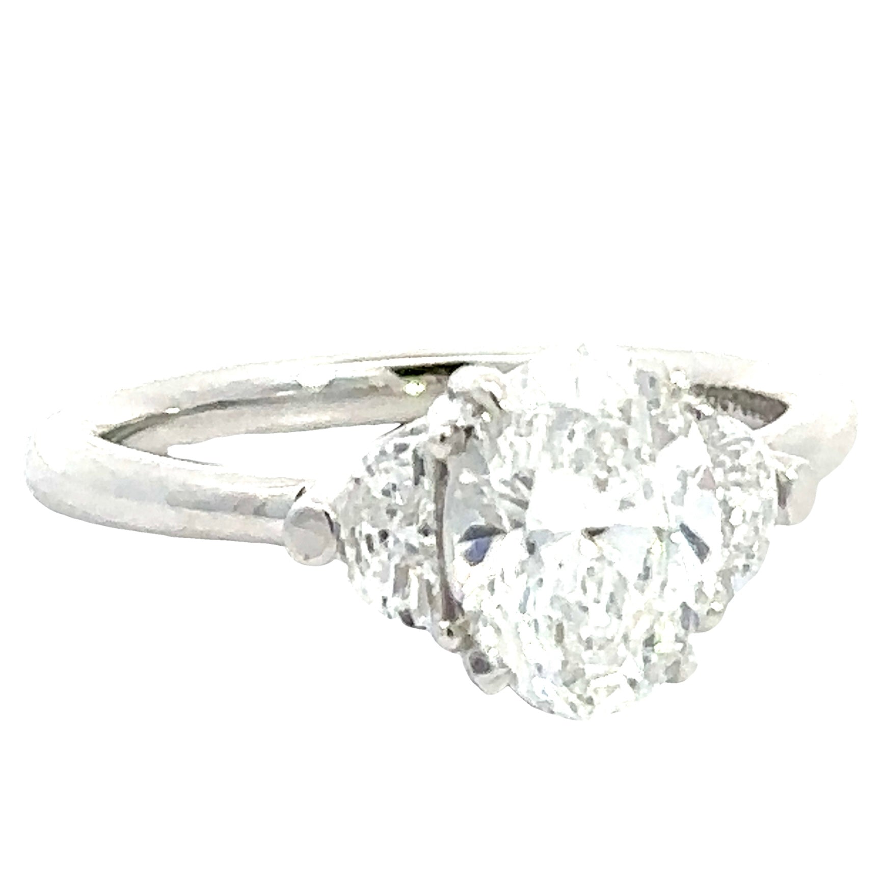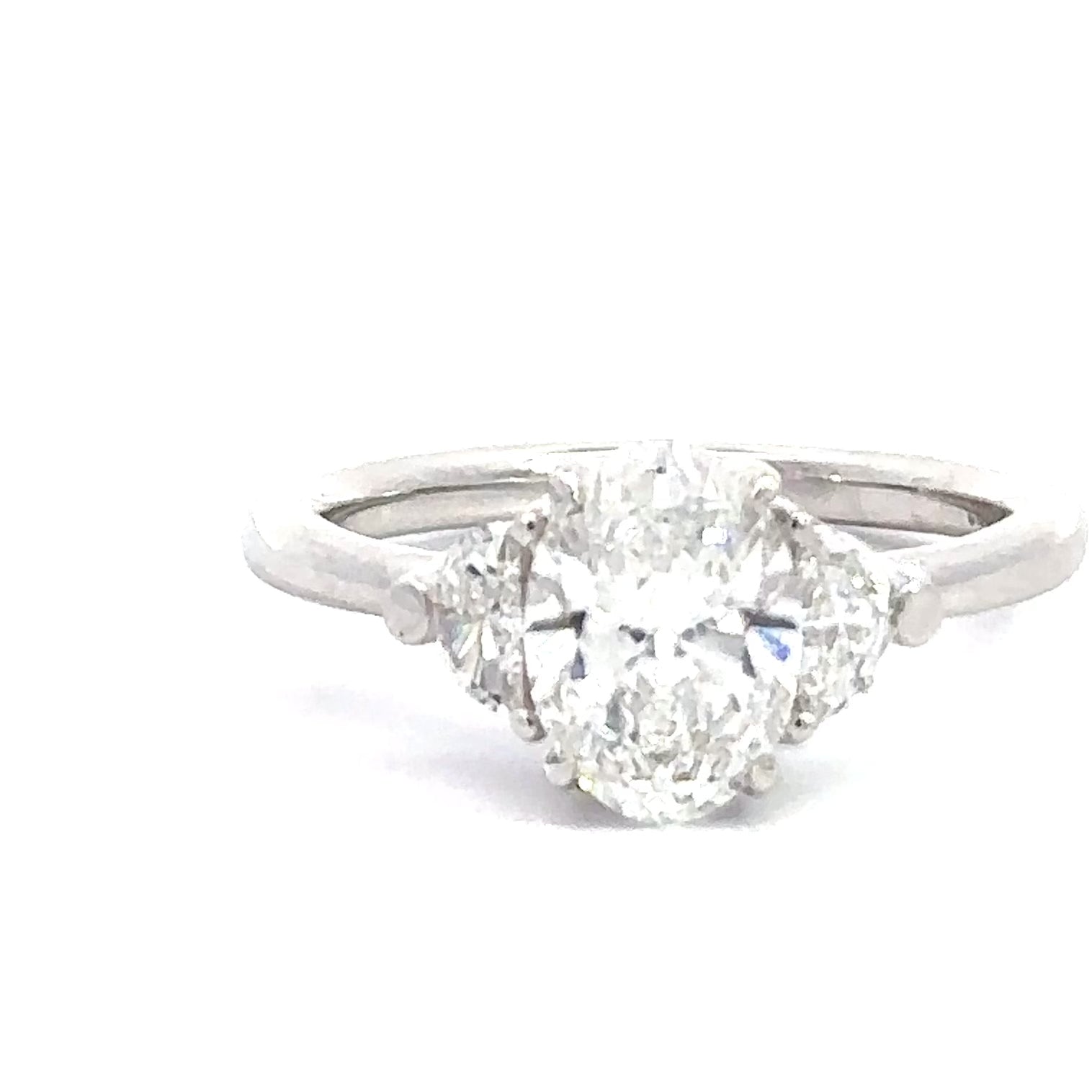 1.51 CT Oval Lab Grown Diamond 3 Stone Ring in 14K White Gold