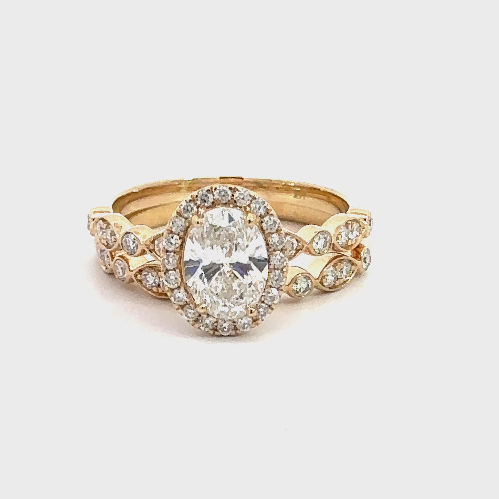 1.52 CTW Oval Lab Grown Diamond Wedding Set in 14K Yellow Gold