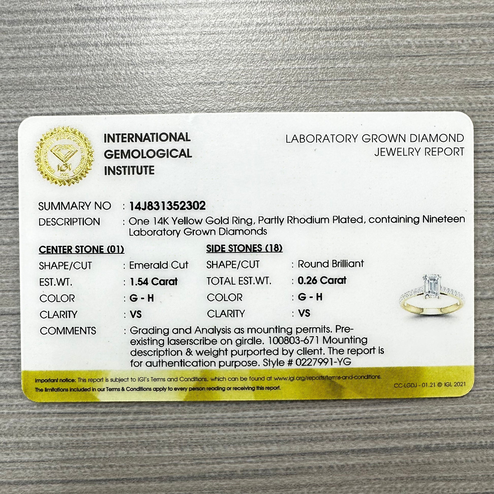 1.80 CTW Emerald Lab Grown Diamond Ring in 14K Yellow Gold
