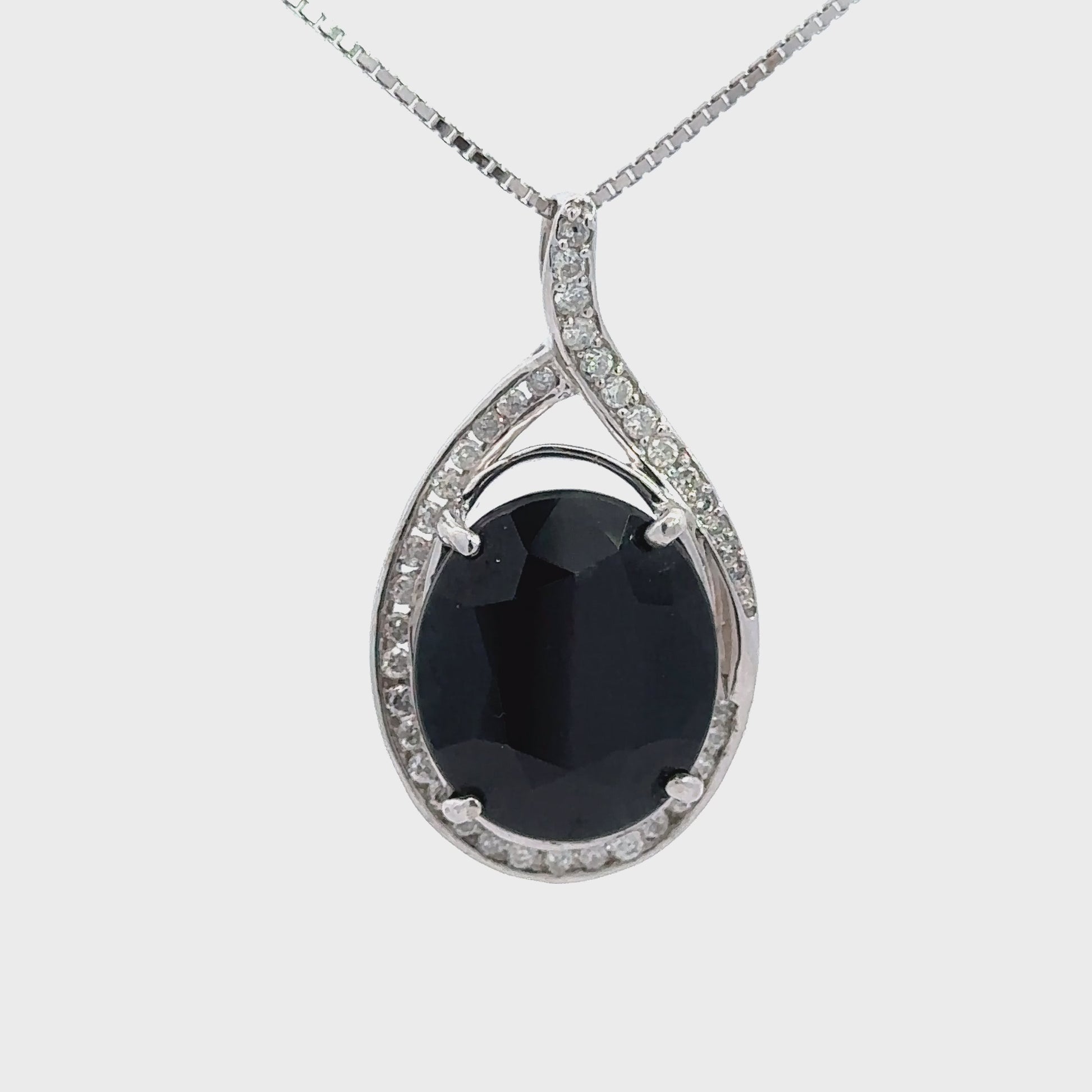 14.06 CT Oval Gemstone & Diamond Necklace in White Gold