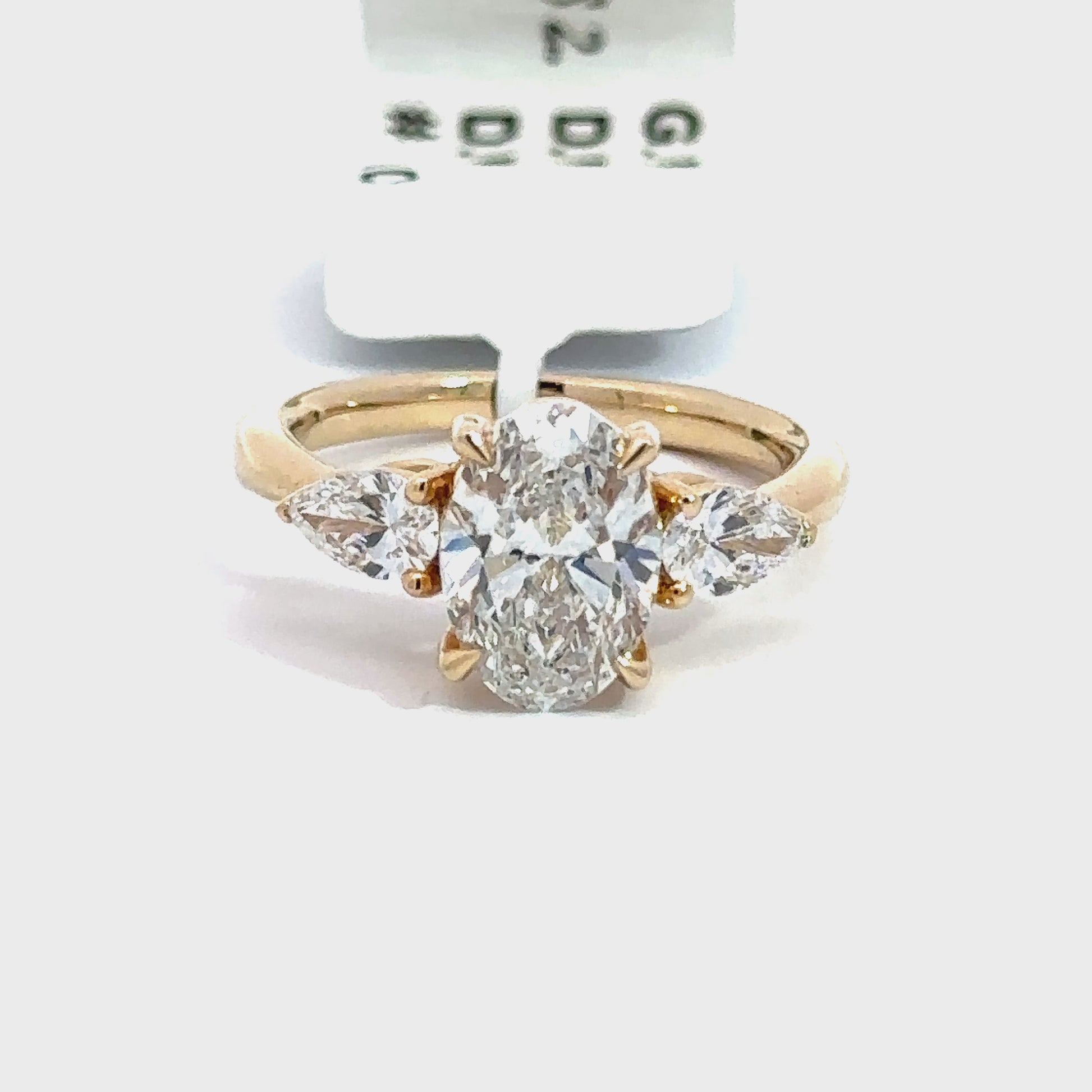 2.00 CT Oval Lab Grown Diamond Three Stone Ring in 14K Yellow Gold