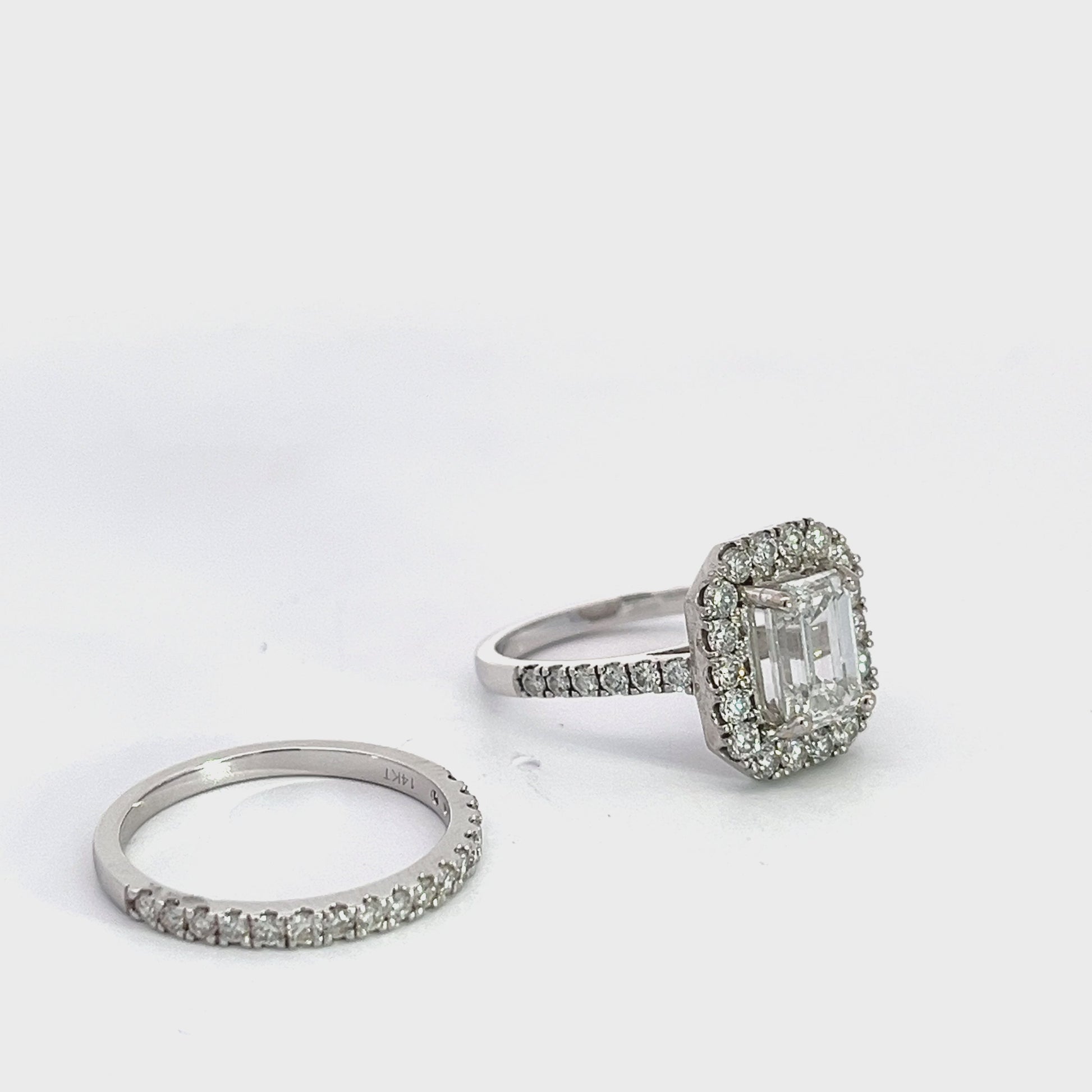 2.25 CTW Emerald Cut Lab Grown Diamond White Gold Wedding Set