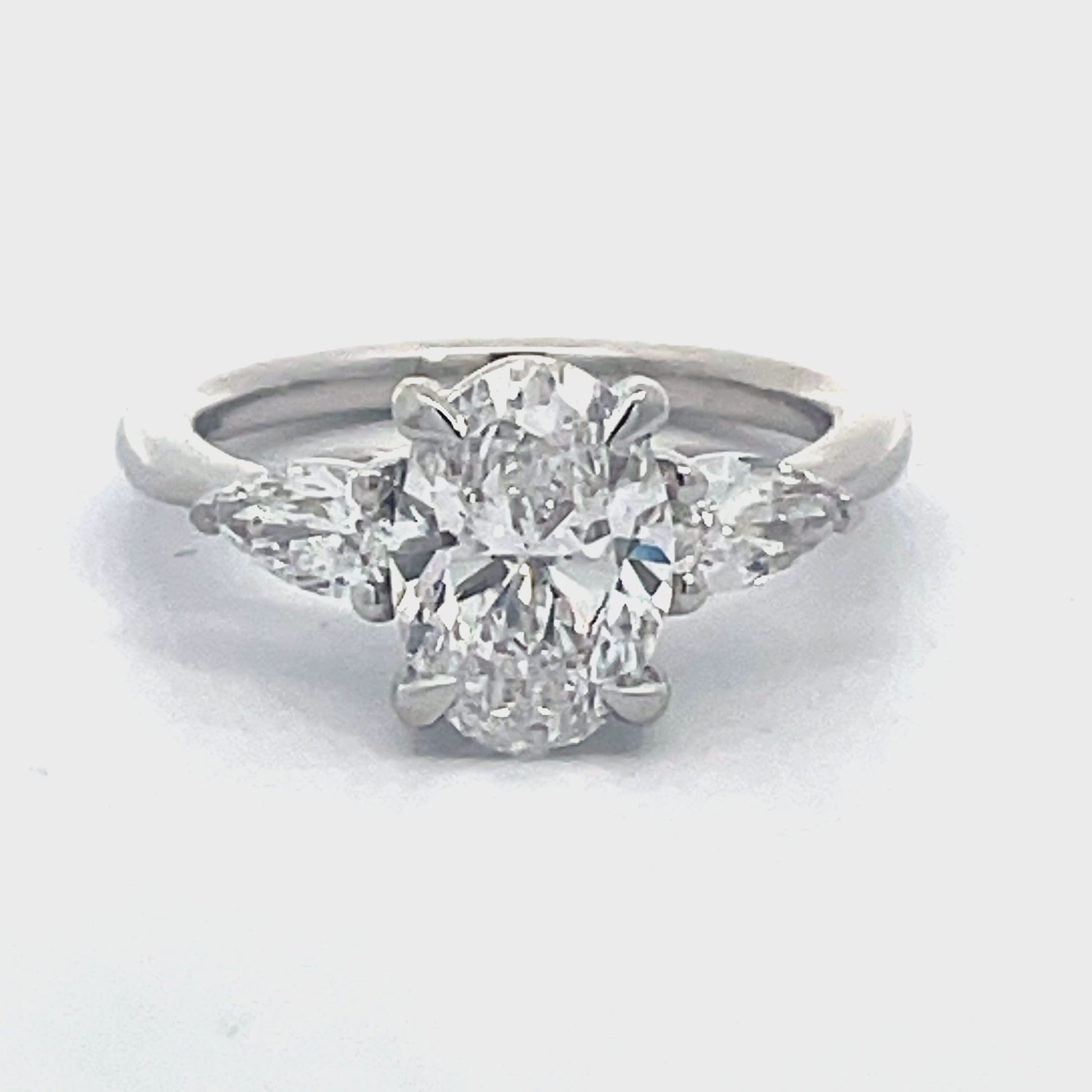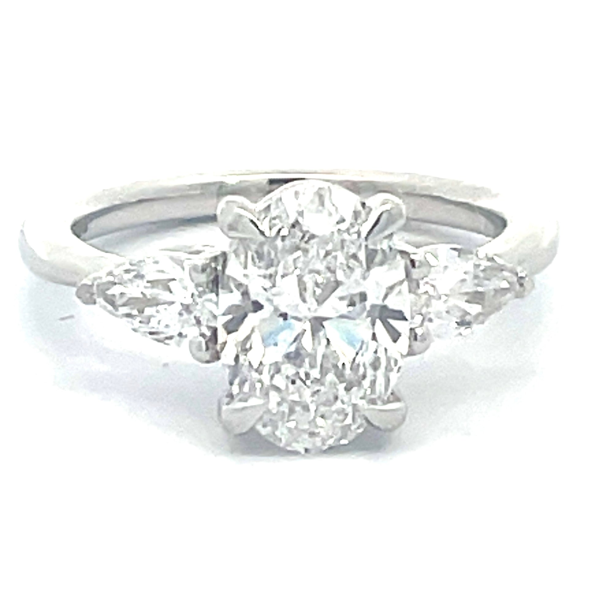2.48 CTW Oval With Pear Side Stones Lab Grown Diamond Ring in 14K White Gold