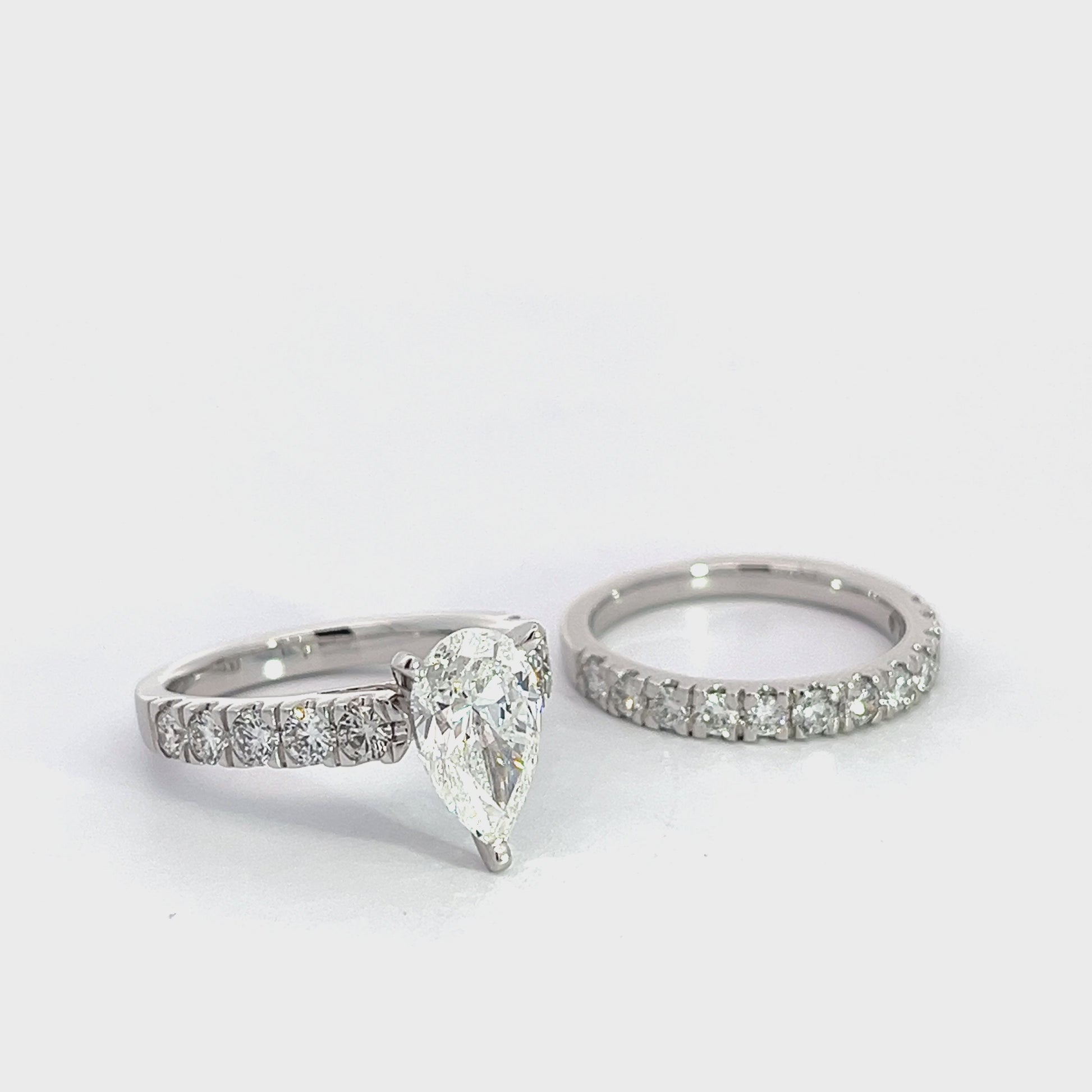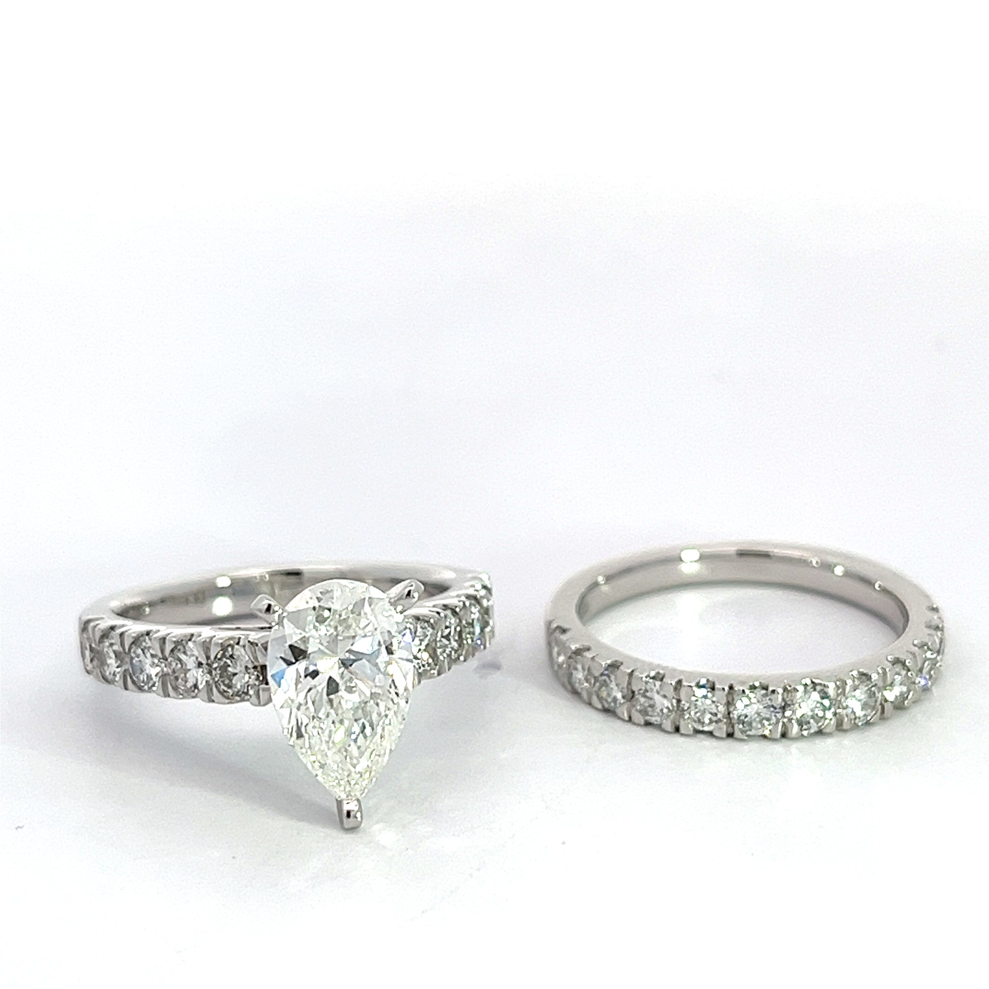 3.50 CTW Lab Grown Pear Shape Diamond White Gold Wedding Set