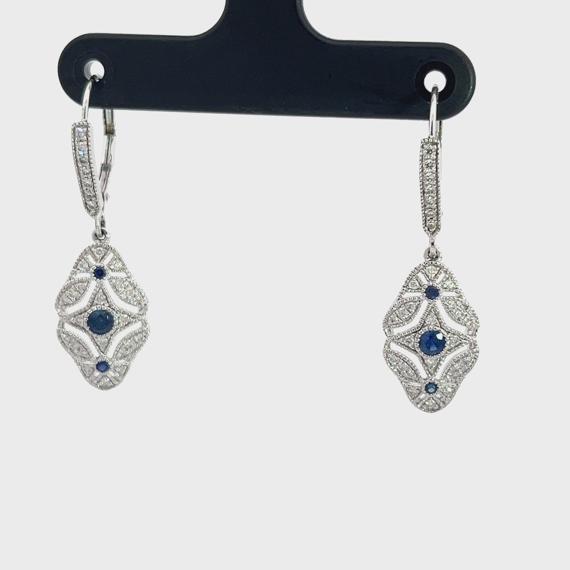0.33 CTW Diamond and Sapphire White Gold Dangle Earrings