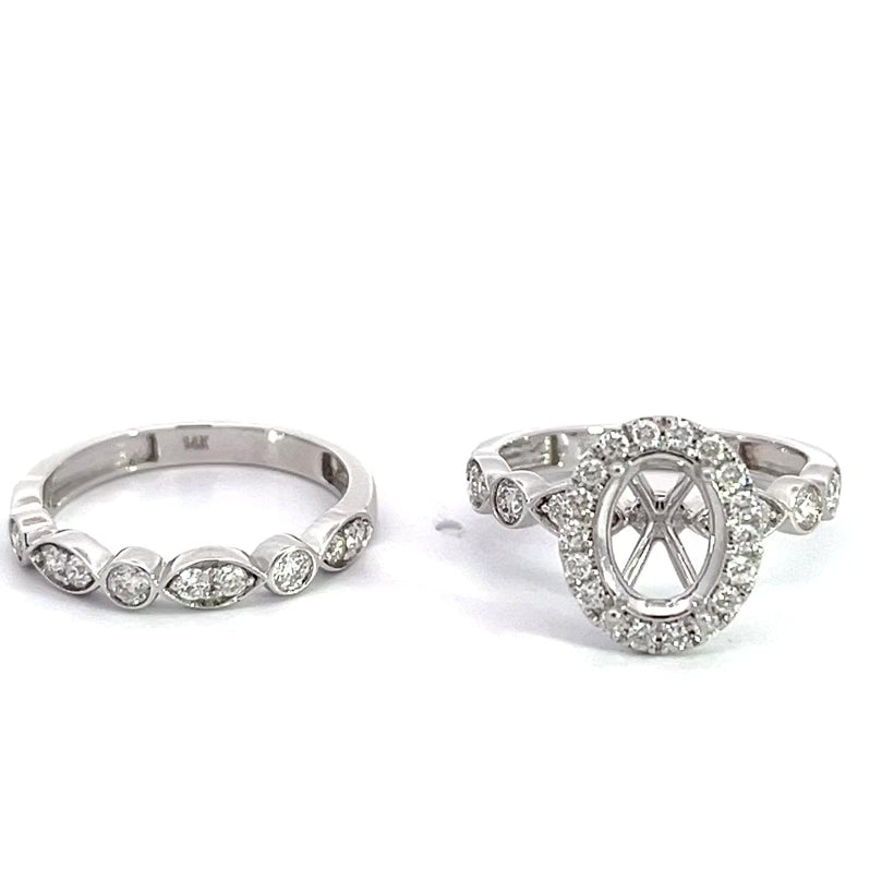 0.88 CTW Oval Wedding Set Mount in White Gold