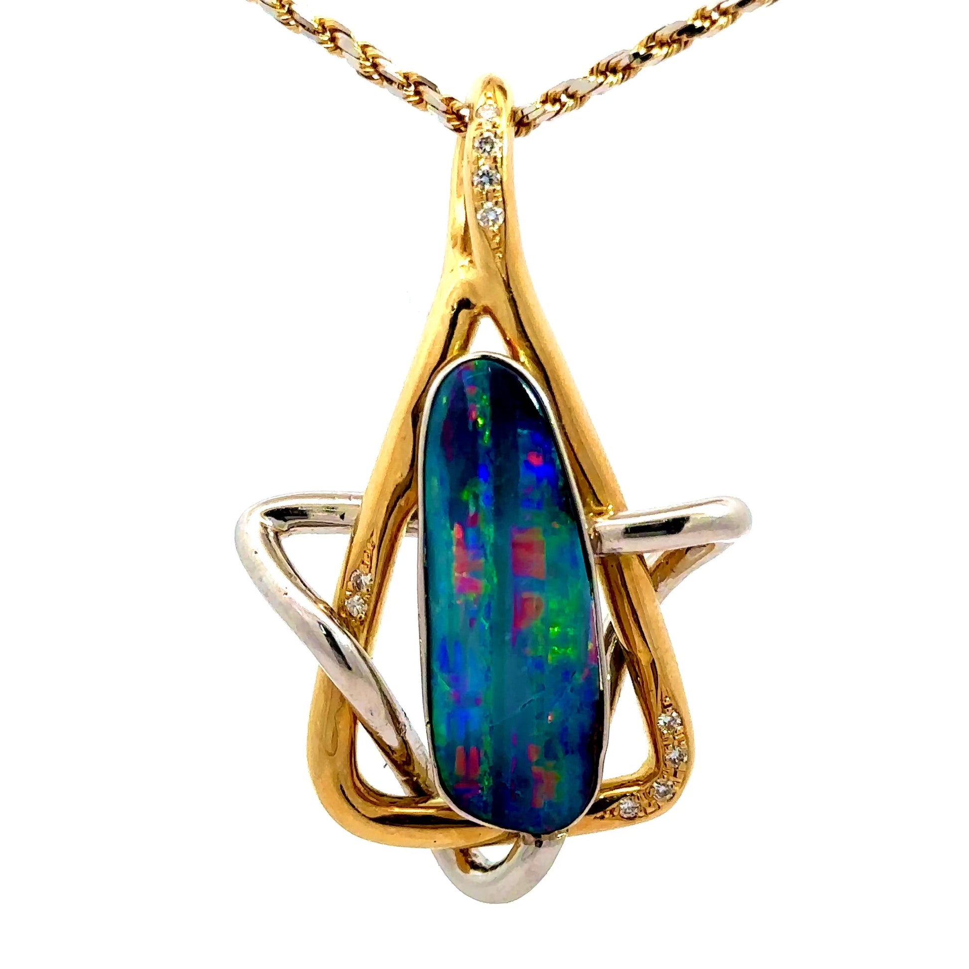 9.65 CT Boulder Opal & Diamond Necklace in 18K Yellow Gold and Platinum