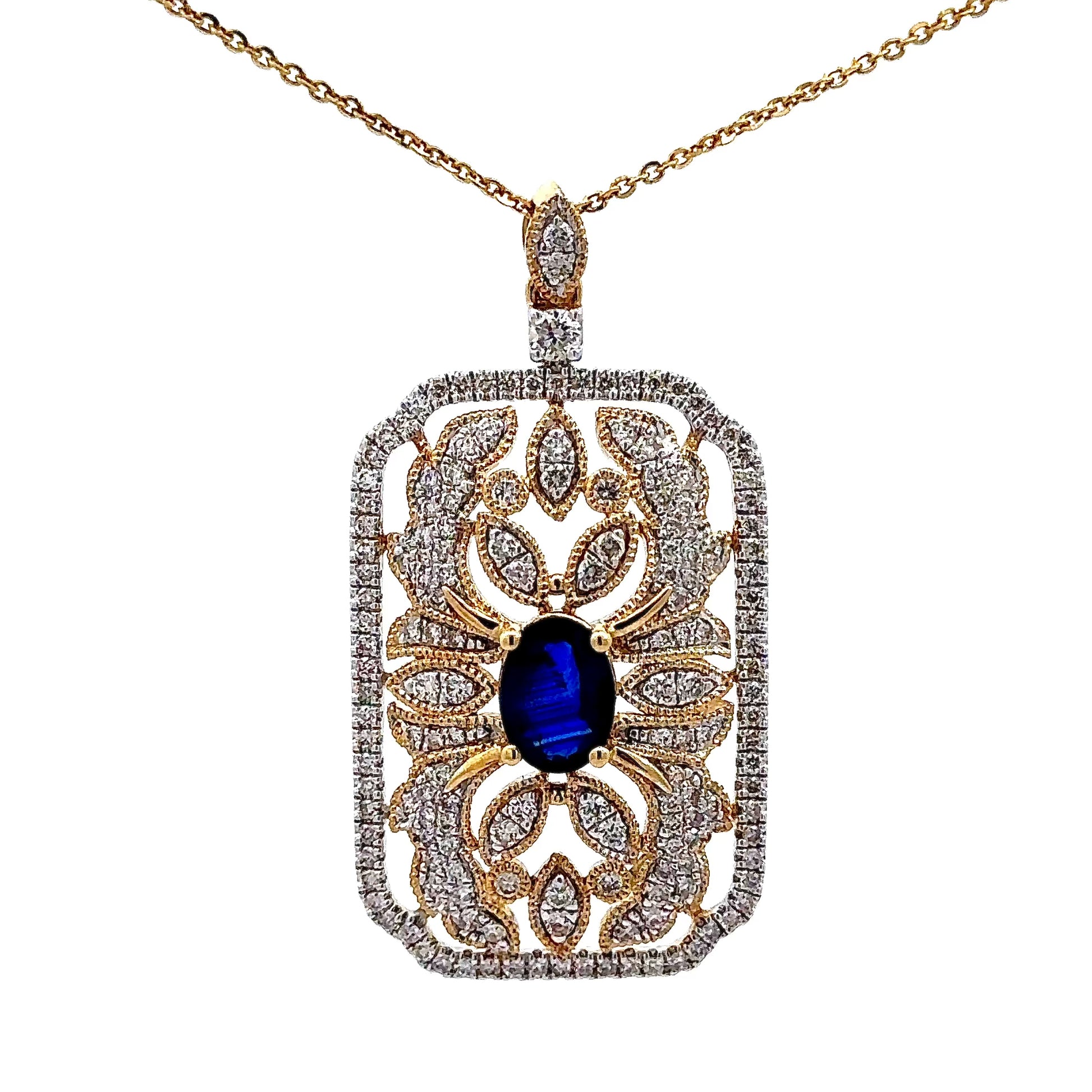 Blue Gemstone & Diamond Necklace in 14K Yellow Gold