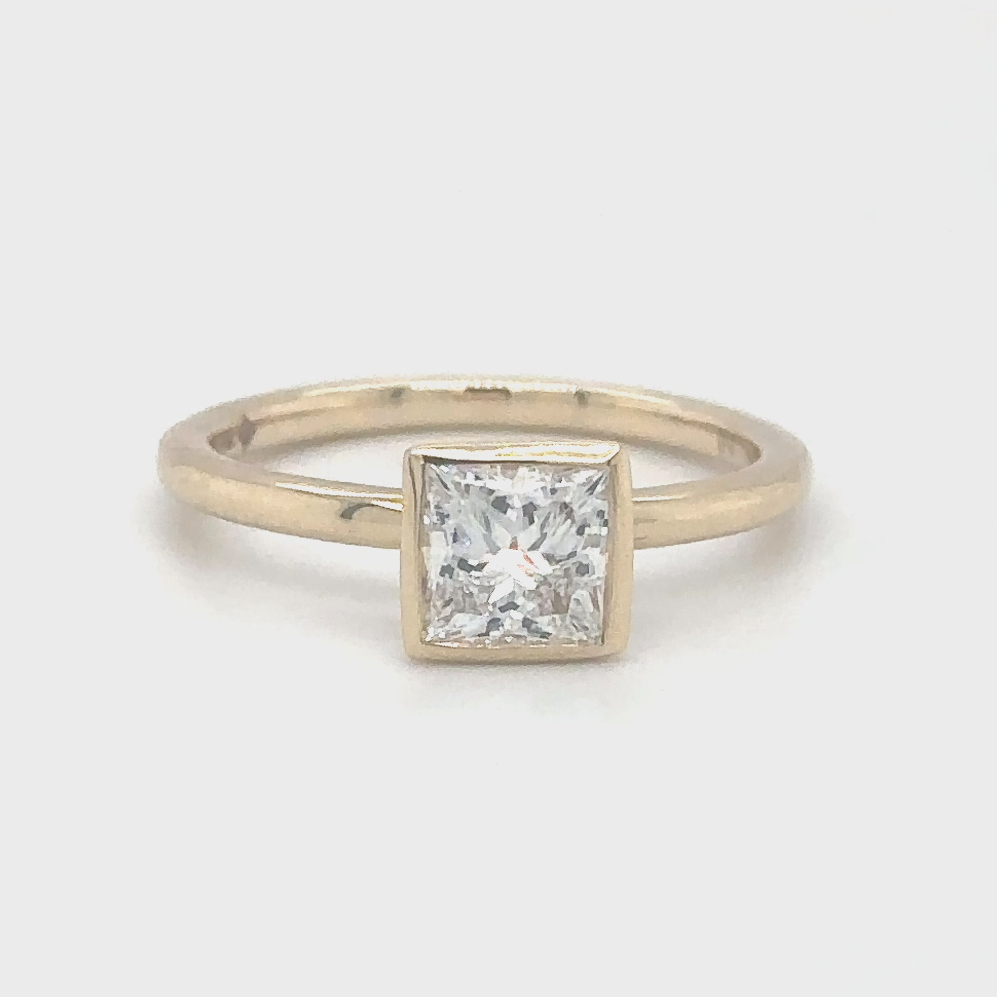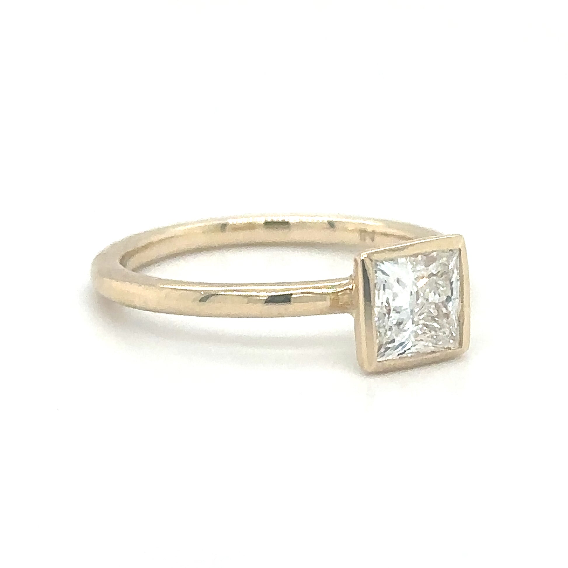 Yellow Gold 14KT 1.00CT Princess Cut Diamond with Bezel Solitaire Sol RIng